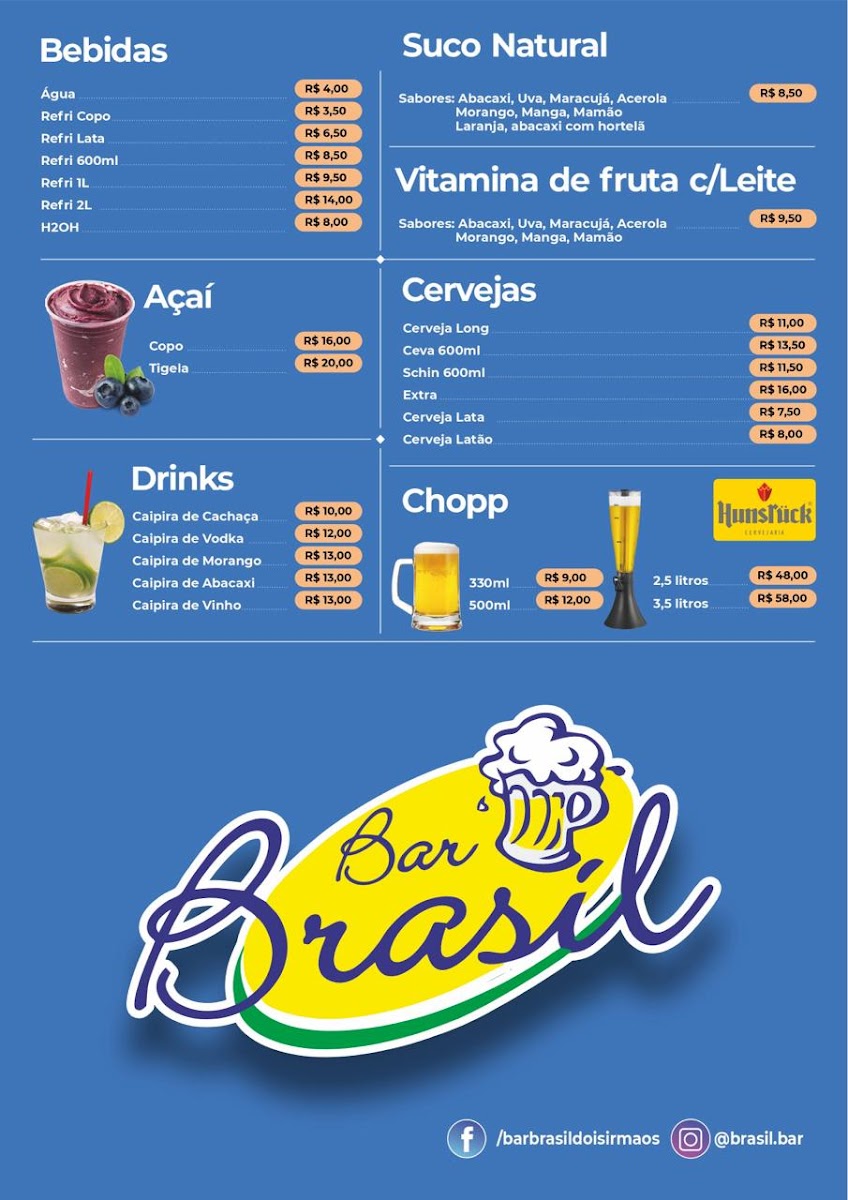 Bar Brasil, located at Av. São Miguel, 555 - sala 25 - Centro, Dois Irmãos - RS, offers a delightful and diverse menu catering to various dining preferences. The restaurant's menu includes multiple options that cater to families, couples, and those looking for a convenient delivery service.